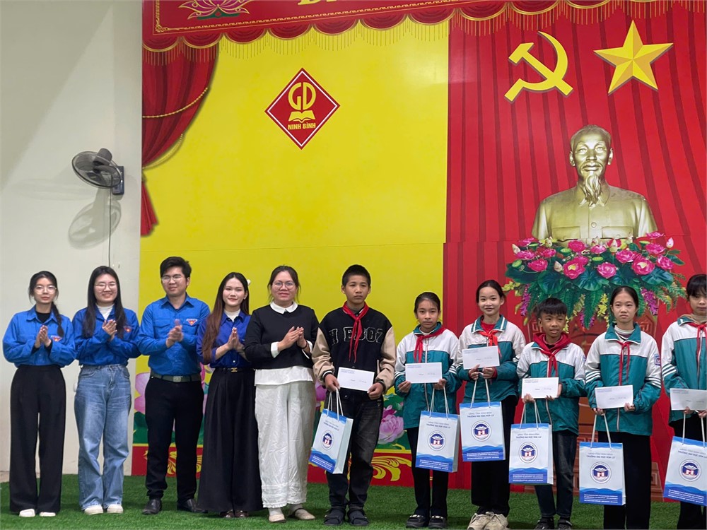 Đoàn Thanh niên – Hội Sinh viên Trường Đại học Hoa Lư tham gia tặng quà cho học sinh có hoàn cảnh khó khăn tại Trường THCS Gia Tân